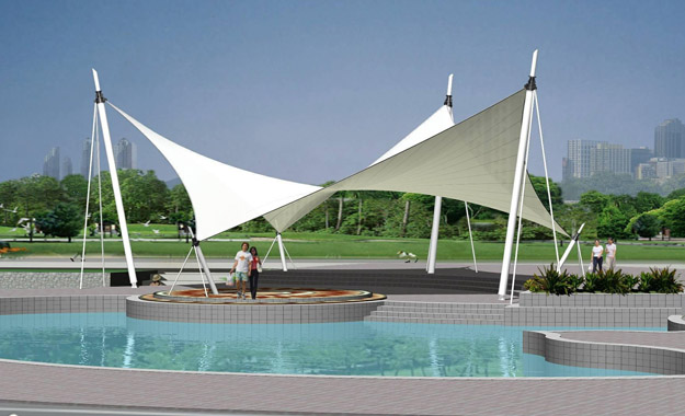 應(yīng)用,使膜結(jié)構(gòu)抵御風(fēng)雨的能力是一般雨蓬